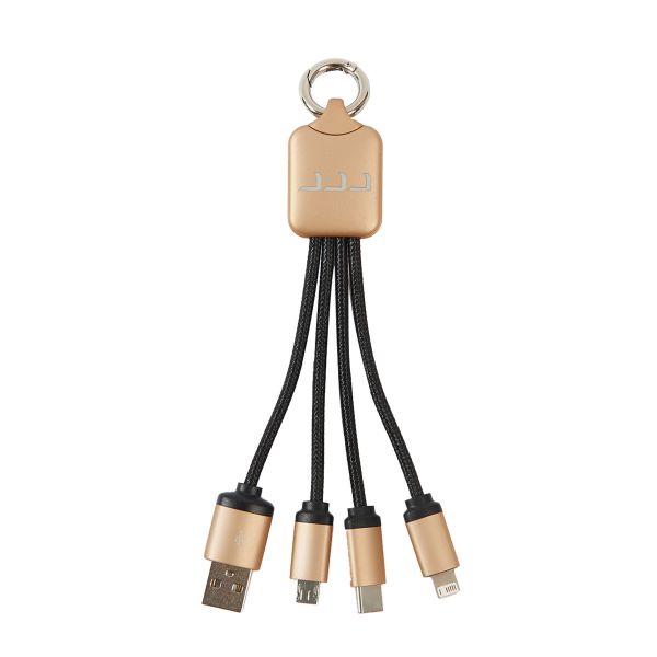 Very convenient charging cable in golden color with logo that appears once the USB is plugged.