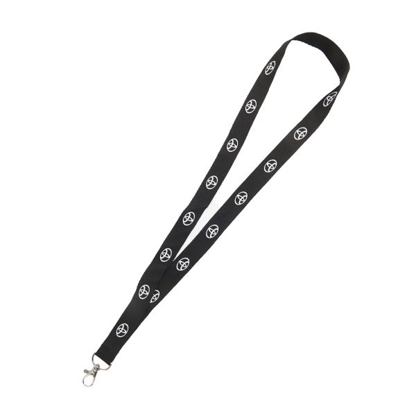Black lanyard in polyester with safety lock in plastic and metal hook to hang your keys or a badge. White logo repeated all over. Packed by 10pcs