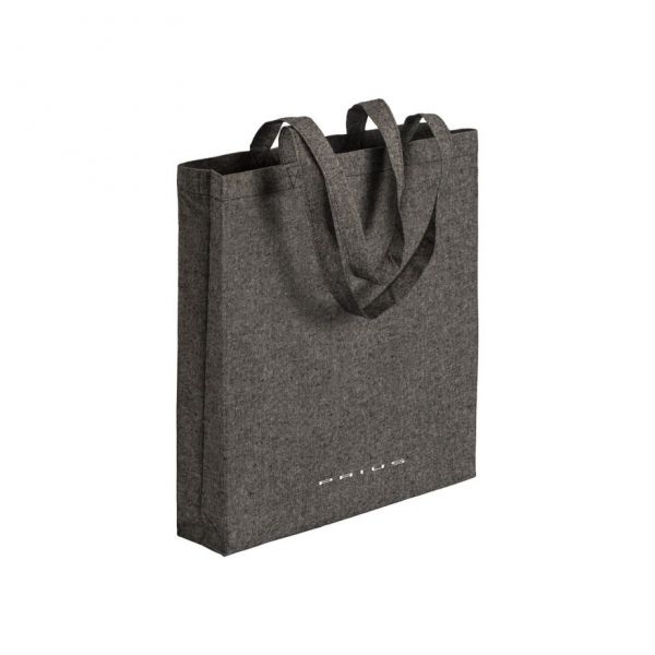 190 g/m2 recycled cotton shopping bag with long handles. You can carry with you in your car for multiple use.