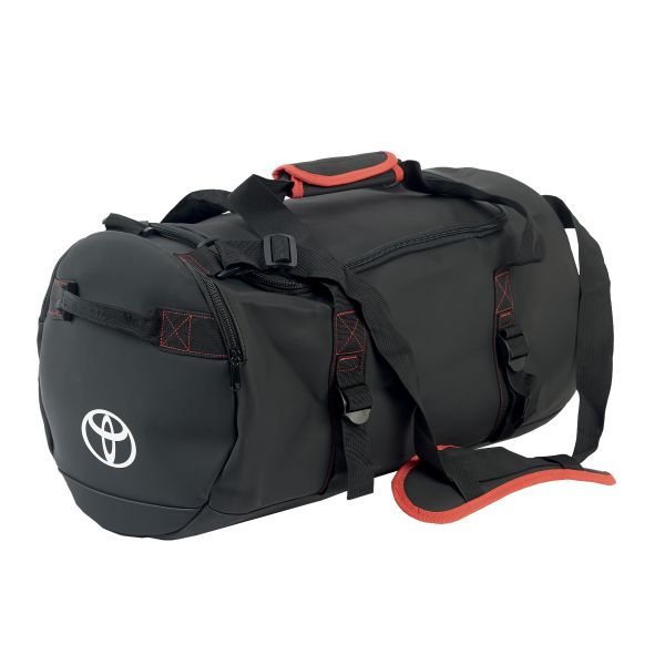 Combine sport and trendy look via this sports bag in PU material with 2 handles with adjustable straps and extra 2 adjustable shoulder straps on top to carry the bag as a backpack. Very trendy look. Size +/- 50 x 30 x 30cm.
