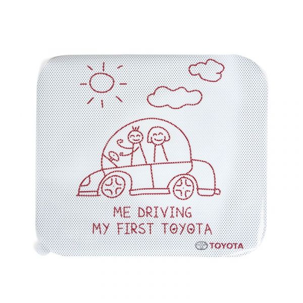 Sticks by static to the side window to protect against the sun. Featuring an attractive child-friendly drawing. Dimensions: 33 x 29 cm.