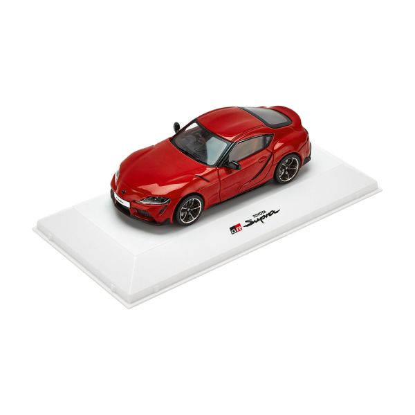 1-43 scale replica model of the 2019 GR Supra Racing prominence red car. Constructed individually finished and mounted presented in a perspex display box.