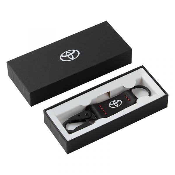 Taking the standard keyring to a whole new level our high quality 110mm leather keyring beautifully joins a split ring with an HK-style snap hook. Design for practical functionality the strong and reliable sprung loaded HK-style clip effortlessly opens with your thumb making it easy to attach your TOYOTA keys to your belt loop or bag.