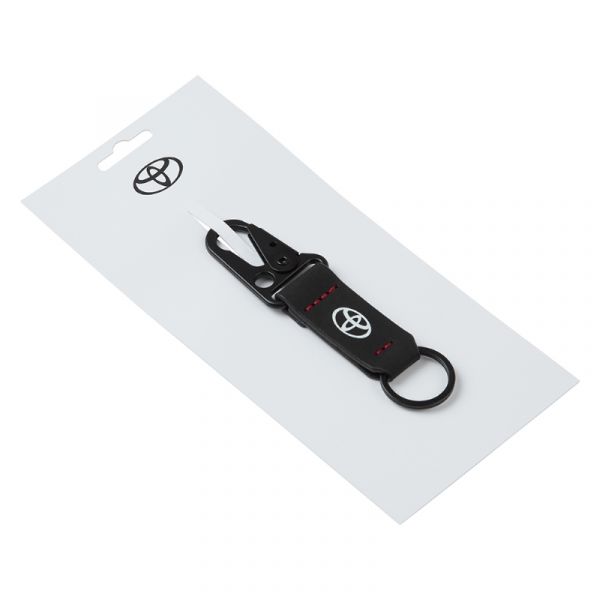 Designed for your promotional activities our high quality 110mm leather keyring beautifully joins a split ring with an HK-style snap hook. Design for practical functionality the strong and reliable sprung loaded HK-style clip effortlessly opens with one thumb making it easy to attach your TOYOTA keys to your belt loop or bag.