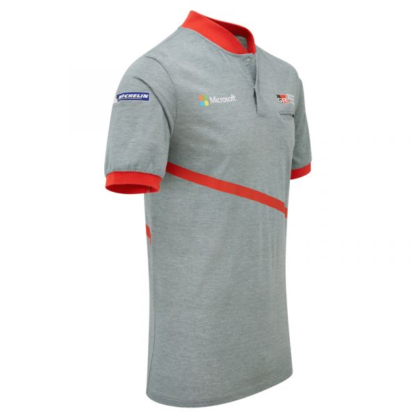 A modern replica polo shirt with team partner logos to the right arm and front chest.